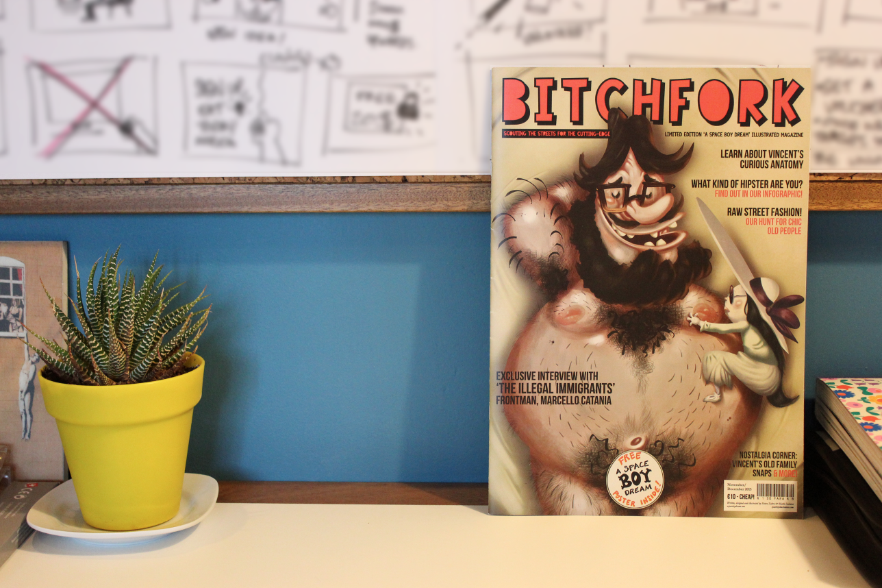 "A Space Boy Dream" is a webcomic that I write and draw with my partner in crime, Mark Scicluna. It ran for more that a year until October 2013 and we're currently on hiatus. During the Malta Comic-Con 2013 we printed a limited number of "Bitchfork" magazines. I was in charge of writing all the content in the magazine as well as drawing the illustrations for "Bitchfork Recommends" and "What Kind of Hipster are you?". I also drew the backgrounds for "Raw street fashion." The rest of the awesome illustrations, including the cover were done by Mark. Below are the screenshots, and the full interactive PDF. Enjoy :)